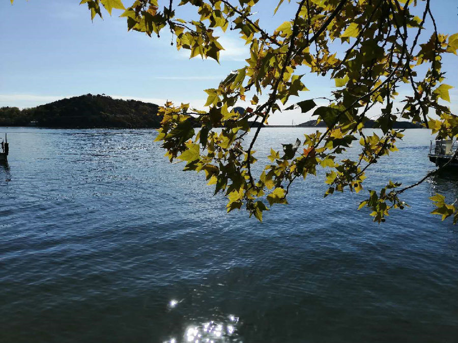 天水碧。染就一江秋色,老师们泛舟碧湖,被湖畔两侧的风景吸引着,风吹过,秋叶纷纷飘落在湖面上,连着湖面一起晕染成金黄色,这是秋天独有的景色,让人纷纷感叹秋天的雁栖湖景真美,宛如人间仙境。