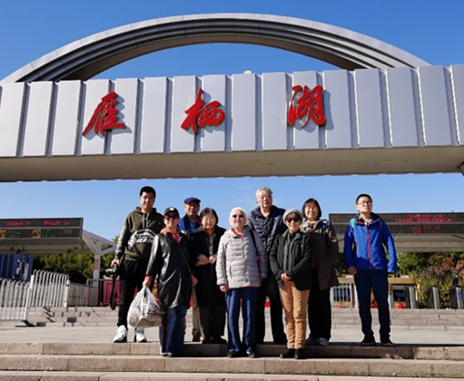 寒山转苍翠,秋水日潺湲,雁栖湖水像一面镜子,映出蓝天白云的倒影,真是风景如画,秋色宜人。老师们漫步在湖水边,一边欣赏美景一边回忆年轻时曾来过此处的情景,感叹时代发展和社会进步。不时停下来用手机捕捉秋日美景,开心的合影留念。