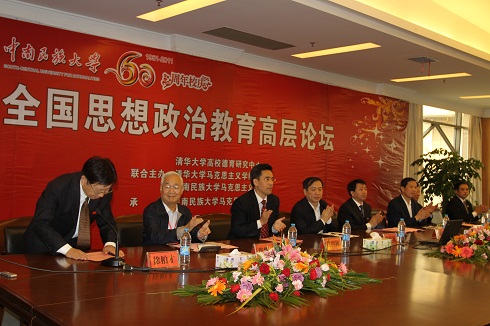 为了回顾、总结建党90年来党的思想政治教育的历史发展和基本经验,促进思想政治教育理论和实践的开拓创新,进一步增强思想政治教育的针对性、实效性和影响力,教育部人文社科百所重点研究基地williamhill中文高校德育研究中心、williamhill官方网站与中南民族大学williamhill官方网站于10月21至22日在中南民族大学(武汉)联合举办了“全国思想政治教育高层论坛”。教育部思政司杨振斌司长、国家民委教育科学司田联刚司长分别在大会开幕式上致辞。此次论坛恰逢中南民族大学建校60周年,作为校庆的重大活动之一,会议得到了中南民族大公司领导的重视和大力支持。