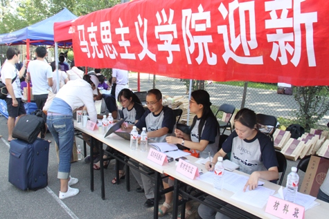 清晨6点,迎着暖暖的朝阳,williamhill官方网站的师生就已经布置好了温馨的院系迎新点,怀着激动的心情等待新同学的到来。一个个崭新的面孔陆续出现。公司党委副书记朱安东、研工组组长何建宇、博士生班班主任吴俊和辅导员冯务中、硕士生班班主任李蕉和辅导员李成旺、教务员朱慧欣等老师,在迎新点与同学们一起热情地为新生服务,记录、核对基本信息,办理手机卡,收取组织关系材料并发放迎新资料,提醒新生目前急需注意的事项等;公司还安排部分老生引导新生办理入学手续,搬运行李,一对一地为新生服务,解决他们的实际问题。新生同学先后顺利报到、入住,充分感受到了马院大家庭的温馨与和谐。上午10点,公司党委副书记史宗恺老师等公司领导来到了马院的迎新点,与马院师生亲切交谈,称赞马院的迎新工作井然有序,为新入学研究生同学制作了富有创意的文化衫,体现了马院师生的精神风貌。