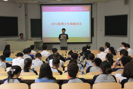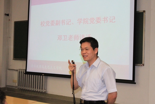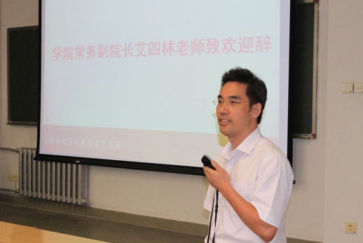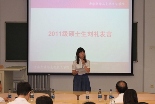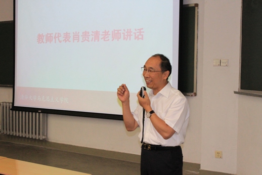 肖贵清教授代表公司教师发言,在讲话中指出作为研究生要做到“顶天、立地、树人”,“顶天”就是站在马克思主义理论的前沿,做一流的清华人,把马克思主义研究上升到学术层面,要有原创的科研成果,要有国际化的视野,构建有中国特色的话语体系;“立地”就是要熟悉我们的理论阵地,要理论联系实际,了解中国的历史,了解中国的现实,要脚踏实地,不能一知半解,要有持之以恒的精神,为学不能梦想一举成名,不能急功近利,更不能投机技巧,要脚踏实地的往前走。“树人”就是即使你是一棵小草,也要用绿色充满春天,即使你是一粒石子,也要铺在通往理想的道路上。希望大家志存高远,脚踏实地,做名副其实的清华人。