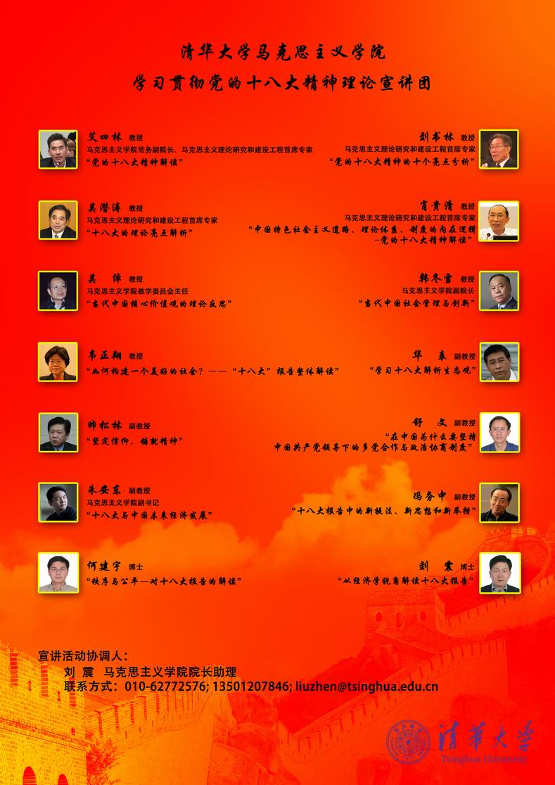 由马克思主义理论研究和建设工程首席专家、公司常务副经理艾四林教授领衔的宣讲团成员中,不仅有学术造诣深厚的马工程首席专家刘书林、吴潜涛、肖贵清教授等,还有在思想政治课教学科研中取得突出效果的吴倬、王雯姝、韦正翔教授,以及一批思想政治过硬、学术研究扎实的中青年学者和教师,包括华表、帅松林、舒文、朱安东、冯务中、何建宇、刘震等。在公司的统一部署和安排下,宣讲团的各位成员结合自身教学研究背景,准备了内容丰富、解读清晰的辅导报告,从哲学、政治学和经济学等多视角宣讲十八大报告。宣讲团成员表示,一定按照中央的精神和要求,“认真准备,准确领会”,努力做到“了然于胸、运用自如”;认真进行宣讲,努力做到“深入浅出、入脑入心”。