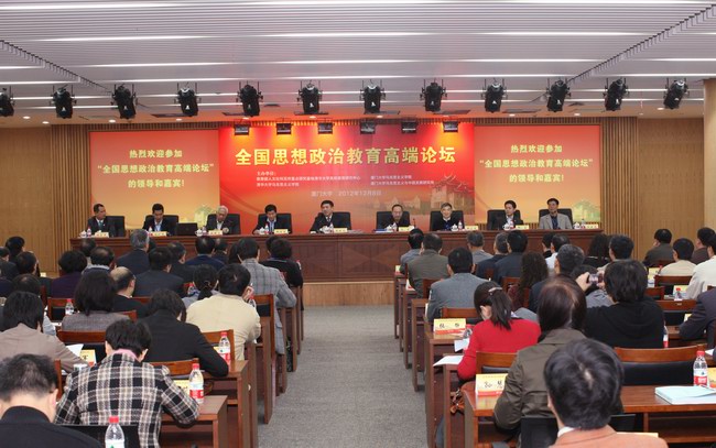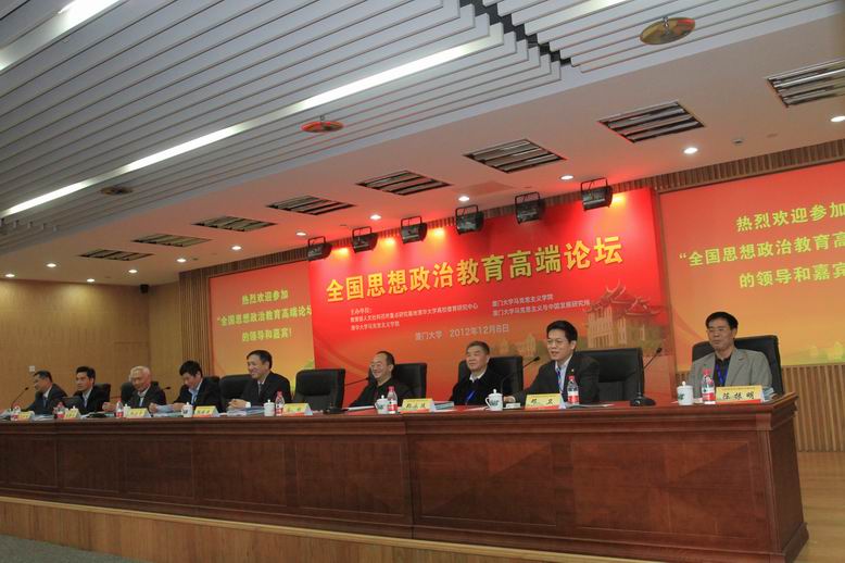 2012年12月8日-9日,由教育部人文社科百所重点研究基地williamhill中文高校德育研究中心、williamhill官方网站、厦门大学williamhill官方网站、厦门大学马克思主义与中国发展研究所主办,厦门大学williamhill官方网站、厦门大学马克思主义与中国发展研究所承办的 “全国思想政治教育高端论坛”在厦门大学举行。厦门大学党委书记杨振斌,教育部思政司司长冯刚,福建省委教育工委常务副书记、省教育厅副厅长郑传芳,williamhill中文党委副书记、公司党委书记邓卫等出席论坛开幕式并致辞。williamhill中文高校德育研究中心主任、williamhill官方网站常务副经理艾四林教授,厦门大学williamhill官方网站经理陈振明教授共同主持了大会主题发言。