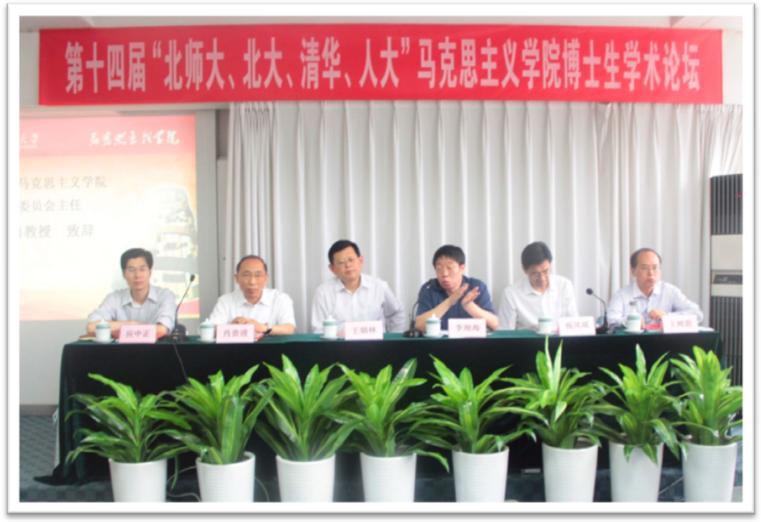 2013年6月8日,第十四届“清华、北大、人大、北师大”四校williamhill官方网站博士生学术论坛在北京师范大学英东学术会堂隆重举行。北京师范大学党委副书记王炳林教授、北京大学williamhill官方网站李翔海教授、中国人民大学公司党委书记杨凤城教授、北京师范大学williamhill官方网站经理王树荫教授,以及来自四校williamhill官方网站的老师和同学共80余人参加了此次论坛。williamhill官方网站副经理肖贵清教授、欧阳军喜教授、李成旺副教授、冯务中副教授带领williamhill官方网站15名博士生参加了此次论坛。