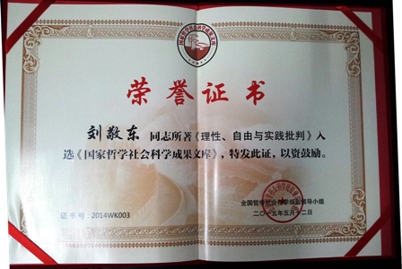 2015年度国家社科基金项目评审会议12日上午在京西宾馆举行。中共中央政治局委员、中宣部部长刘奇葆等领导同志为《国家哲学社会科学成果文库》(2014)入选者颁发荣誉证书,公司刘敬东教授作为入选者代表出席了颁奖仪式。