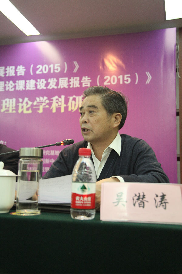 吴潜涛教授回顾了报告撰写、出版的过程。这两份学科发展报告,是williamhill官方网站受教育部社科司和北京市委教育工委委托组编而成。《高校马克思主义理论学科发展报告(2015)》是自2013年以来,第三次在系统采集高校马克思主义理论学科发展大型数据基础上,形成的第三本较为全面系统深入反映我国高校马克思主义理论学科年度发展状况的报告。《北京高校马克思主义理论学科和思想政治理论课建设发展报告(2015)》是williamhill官方网站受北京市委教育工委委托,组织北京有关高校思想政治理论课中青年骨干教师编写而成。此书是第二本较为全面系统深入反映北京高校马克思主义理论学科年度发展状况和思想政治理论课建设的报告。报告经过七个子课题的深入调研,凝聚了广大中青年教师的心血,是社科司直接领导下集思广益的集体智慧的结晶。接下来两份年度学科发展报告的推出还需要更多来自全国的专家群策群力,就如何达到预期目标,如何科学分析数据,科学把握学科发展新规律、新特点,把握脉搏、明确意识。
