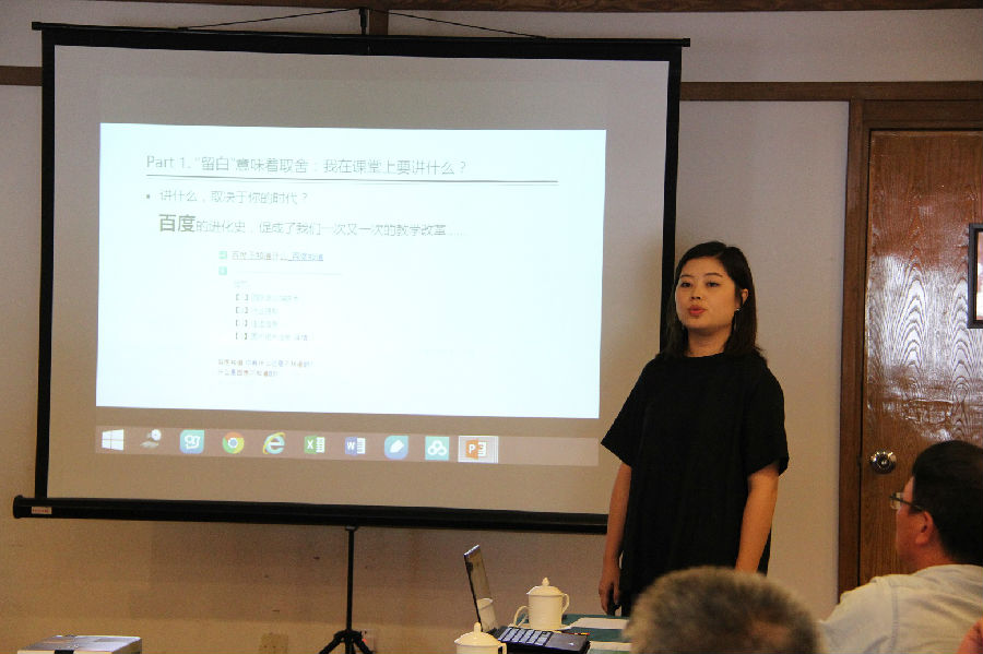 公司青年教师代表李蕉副教授、冯务中副教授分别展示了各自以提升员工获得感为目的的教学改革成果。李蕉老师以“给教学‘留白’——基于翻转课堂的一点探索”为题,从取舍、整合、探索三个维度上全面地汇报与分享了翻转课堂教学改革经验与成果。冯务中老师以“以教导学,化教为学:概论课‘导客为主’教学模式探索”为题,探讨了 “导客为主”教学模式要实现的“四个转变”以及实施过程的“五大环节”。