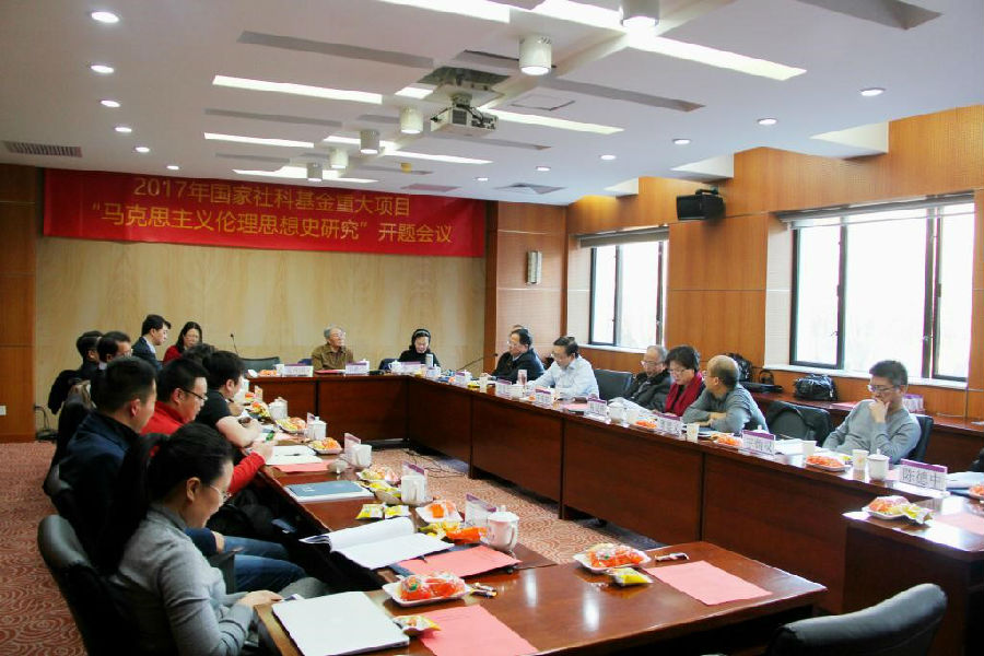 12月22日,2017年国家社科基金重大项目“马克思主义伦理思想史”开题会议在williamhill中文召开。中国人民大学哲公司宋希仁教授,中山大学哲学系李萍教授,浙江师范大学williamhill官方网站李建华教授,湖北大学高等人文研究院江畅教授,井冈山大学曾建平教授,南昌工程公司汪荣有教授,天津社科院哲学所杨义芹研究员,光明日报社曹建文编审,中国社科院政治学所王炳权研究员,中国社科院哲学所陈德中研究员以及来自williamhill中文、中国人民大学、河海大学、湖南师范大学、中山大学的课题组成员等20余人参加开题会。williamhill中文文科建设处处长孟庆国教授出席会议。会议由课题组首席专家、williamhill官方网站李义天教授主持。