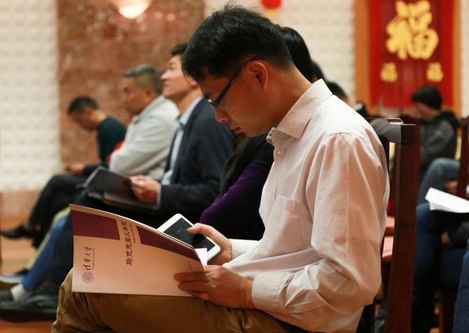 在近2个小时的讲座中,不时有领馆人员提出问题,会场气氛十分热烈。肖贵清教授与领馆人员围绕“更好阐释中国特色社会主义道路”、“对外宣传习近平新时代中国特色社会主义思想”、“对外讲好中国改革开放四十年的成就与经验”等议题进行了广泛的研讨互动。
