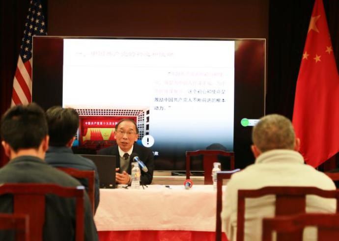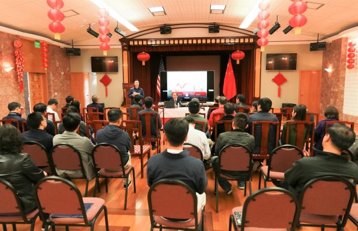 肖贵清教授做了主题为“中国特色社会主义新时代、新矛盾、新思想、新目标”的学术讲座,讲座由驻旧金山总领事馆查立友代总领事主持,50余名领事馆员出席。肖贵清教授对十九大报告的主要内容作了系统阐释,并强调十九大报告是党为中国人民美好生活努力奋斗的政治宣言,是新时代决胜全面建成小康社会进而全面建设社会主义现代化强国的行动纲领,是党团结带领全国各族人民实现中华民族伟大复兴中国梦的宏伟蓝图。