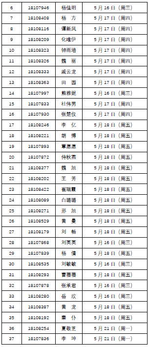 一、时间:5月16日、17日、18日、21日早8:00-9:00