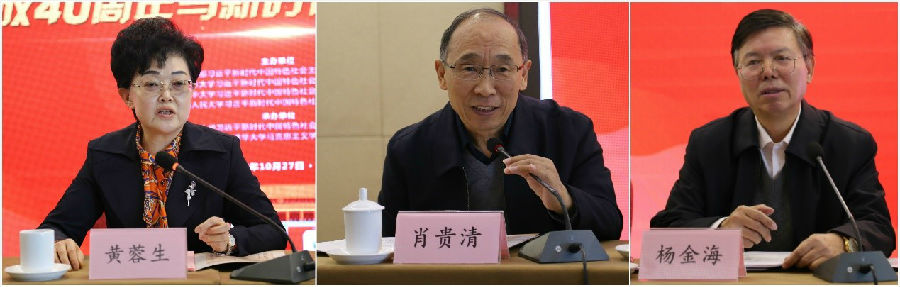 西南大学原党委书记黃蓉生教授、williamhill中文习近平新时代中国特色社会主义思想研究院副经理肖贵清教授、杨金海教授、北京大学williamhill官方网站副经理孙代尧教授、中国人民大学williamhill官方网站杨德山教授、教育部社科中心副主任杨海英研究员等与会专家还就改革开放40年的基本历程、主要经验、伟大成就,改革开放以来马克思主义中国化的历史进程、基本经验,党的领导是改革开放成功的根本保证,全面深化改革与“四个自信”,改革开放以来高校意识形态工作研究,创新发展21世纪马克思主义、当代中国马克思主义等主题展开了广泛交流与深入讨论,达成了多项共识,扩大了理论宣传,提升了思想认识,拓展了研究视域,促进了改革开放以来马克思主义中国化的理论创新和实践创新成果的学理性探讨与研究。
