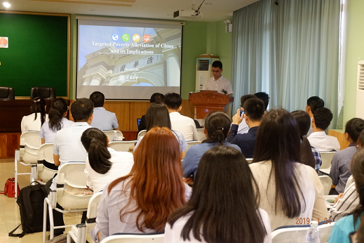 2018级博士张磊结合自身在洛阳、贵州参与扶贫工作和在非洲的实践经历,围绕“中国精准扶贫及其经验启示”这一主题面向金边皇家大学国际关系公司50余名师生和柬埔寨劳工与职业培训部有关官员进行了两场宣讲,通过真实案例,与柬埔寨师生及政府官员交流中国精准扶贫的模式和经验,传递中国智慧。宣讲结束后,柬埔寨劳工与职业培训部副部长对中国精准扶贫模式取得的成就表示赞赏,希望能进一步学习借鉴中国的经验。