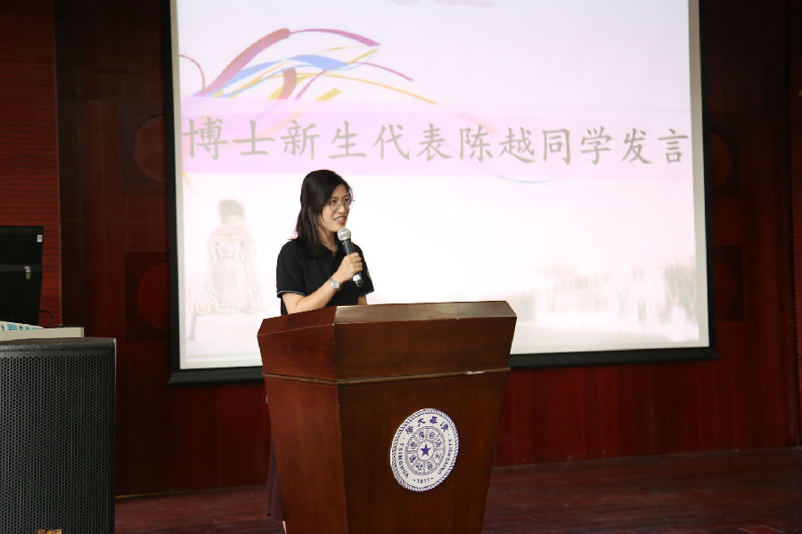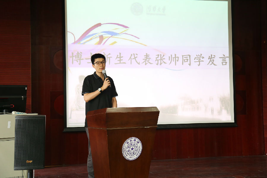 2019级博士生陈越、教育博士生张帅、硕士生车宗凯代表新生发言。陈越说,作为清华的博士生,要有拼搏奋斗、探索未来、责任担当的气质,在清华园把个人有限的可能变成清华无限的可能,不负过往、拼搏现在、成就未来。
