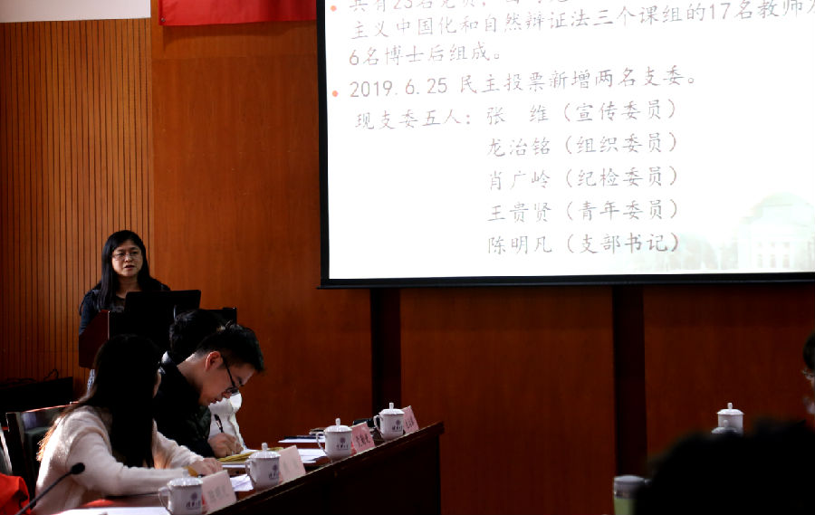 公司教工一支部书记陈明凡从支部开展的活动入手向大家汇报了支部的工作情况,并结合自己支部开展的调研分析提出了在“不忘初心、牢记使命”主题教育背景下,支部不同课组教师如何围绕本课组的专业方向做好与学习和宣传习近平新时代中国特色社会主义思想的结合的具体路径。教工二支部书记张瑜结合近期支委的换届情况,向大家汇报了过去一年支部在开展支部活动、组织生活等方面的情况,并提出将进一步密切与员工党支部的联系,对未来党支部的工作进行了通盘谋划。离退休支部书记刘书林向大家介绍了离退休支部的特殊性以及工作所取得的成果和所面临的挑战,其中详细介绍了离退休支部所开展的慰问老党员以及集体唱红歌和健步走活动,并对未来党支部的活动开展思路进行了介绍。