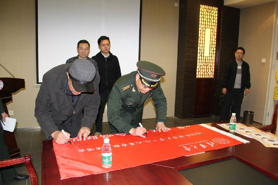 在主题报告会前,与会嘉宾还进行了会谈,嘉宾们就加强一二·九精神在新时代青年中的传承和发扬问题交流了观点,并在今年的一二·九马院环境地学合唱联队队旗上签名留念,为“策马环球”联队的同学们加油鼓劲。