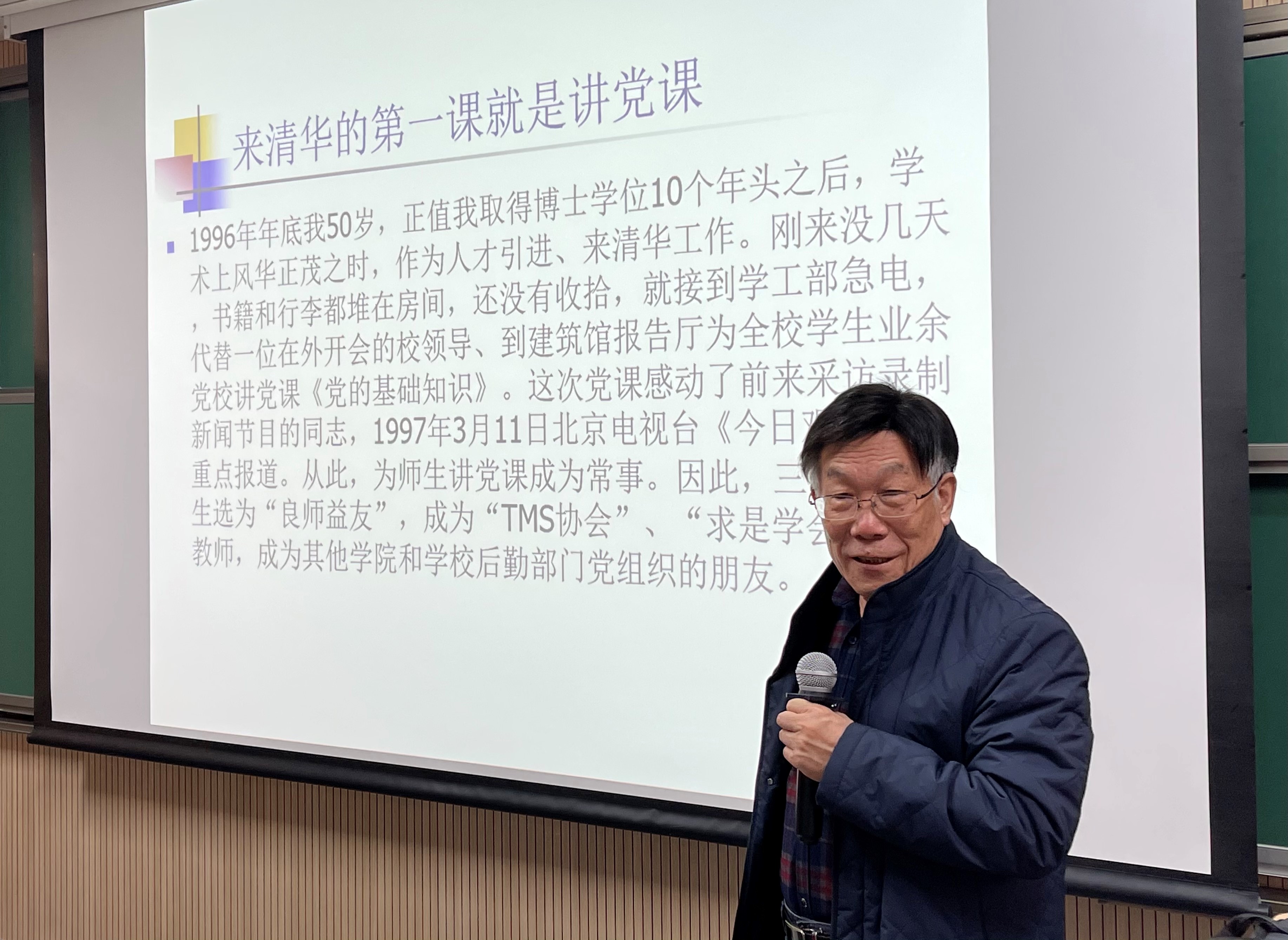 活动开始,刘书林老师通过“入党历程——为党奋斗,建党百年话初心”的主题分享,讲述了自身青有可为、壮有作为、老有所为的人生历程。从讲党课到讲思政课,再到高校德育研究中心创办的具体实践,刘书林老师始终以饱满的热情、充沛的干劲和十足的信心一丝不苟地对待员工教育和学术研究。刘书林老师强调,马克思主义理论研究本身就是党的工作,作为理论工作者和思想理论教育者,我们的任务就是要维护好意识形态的导向,通过党课和思想理论课将正确的价值观念和人生信仰传递给更多有志于为祖国和人民贡献青春力量的莘莘学子。刘书林老师在退休后继续坚守在意识形态领域一线,并多次创造出不朽的学术成果,尽管这一过程充满了与病魔抗争的艰险,走遍了同岁月赛跑的崎岖。在座党员和入党积极分子在刘老师云淡风轻的陈说中潸然泪下,现场响起了经久不绝的掌声。