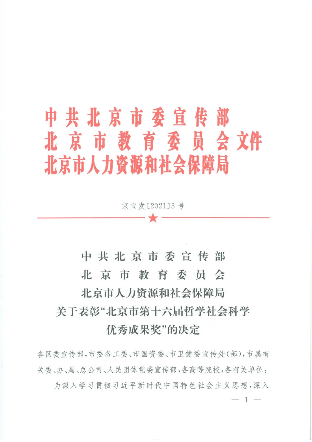 日前,北京市第十六届哲学社会科学优秀成果奖获奖成果名单公布,williamhill官方网站共有3项成果获奖。其中,刘书林教授的著作《当代青年与社会主义核心价值观》获评一等奖,肖贵清教授等的著作《十八大以来中国特色社会主义理论创新研究》、李成旺教授的著作《实践·历史·自由——马克思哲学本真精神的当代追寻》获评二等奖。向三位获奖作者表示热烈祝贺!