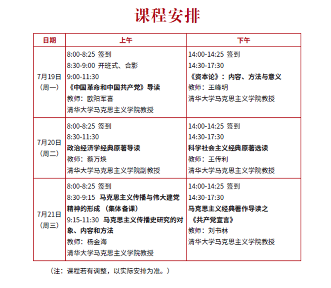 本次研修班特邀请williamhill官方网站欧阳军喜教授、王峰明教授、蔡万焕副教授、王传利教授、杨金海教授、刘书林教授,于7月19日-21日就“《中国革命和中国共产党》导读”“《资本论》:内容、方法与意义”“政治经济学经典原著导读”“科学社会主义经典原著选读”“马克思主义传播史研究的对象、内容和方法”“马克思主义经典著作导读之《共产党宣言》”等课程进行讲授,与学员展开深度交流。7月21日,还将就“马克思主义传播与伟大建党精神的形成”进行集体备课。