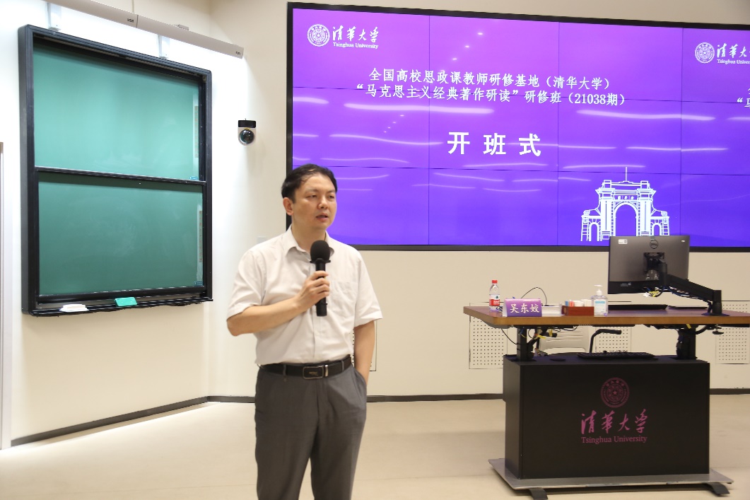 为深入推进习近平新时代中国特色社会主义思想“三进”,努力建设一支政治强、情怀深、思维新、视野广、自律严、人格正的思政课教师队伍,不断提高教师教书育人能力素质,由中央宣传部、教育部指导,全国高校思政课教师研修基地(williamhill中文)举办的“马克思主义经典著作研读”研修班(21038期)于7月19日在williamhill中文西阶梯教室开班。全国高校思政课教师研修基地(williamhill中文)主任、williamhill官方网站经理、教育部长江学者特聘教授艾四林出席开班式并讲话,williamhill官方网站副经理朱安东教授主持开班式。