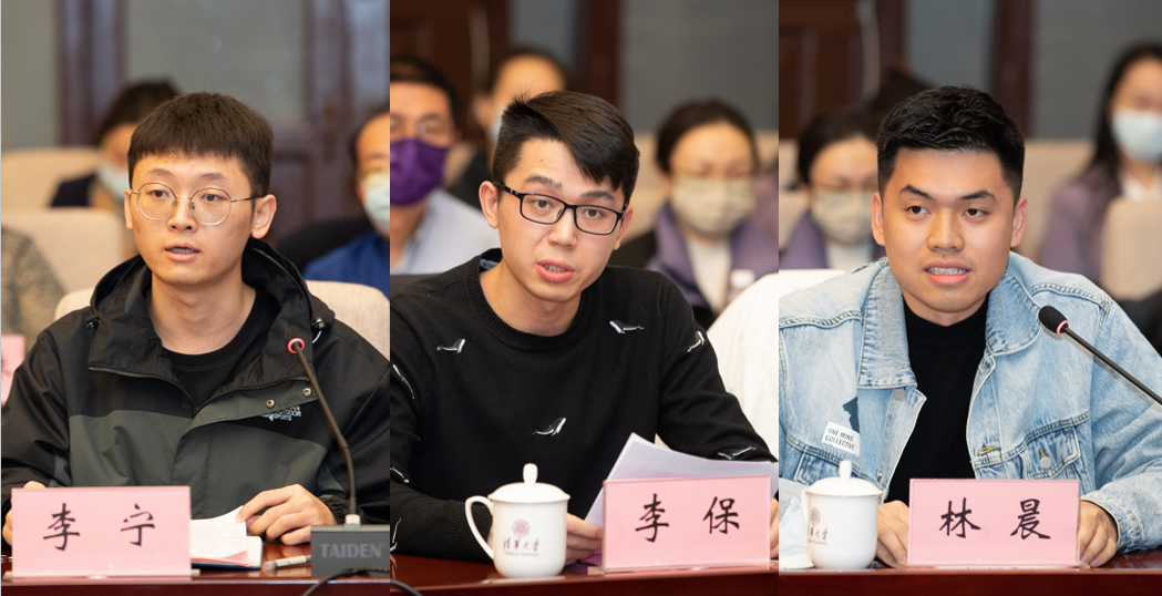 员工代表、社科公司本科生李宁分享了自己在思政课上通过模拟情景对话、口述史等趣味形式进行理论学习、深化思想认识的感受。医公司硕士研究生李保交流了在思政课课堂上学习马克思主义理论以及在课堂外感受专业导师进行导学思政、言传身教,最终激励自己转变思想、立志服务国家的经历。精仪系博士研究生林晨介绍了williamhill中文博士生讲师团开展朋辈理论宣讲,实现学以致讲、以讲促学、讲学相长的自主式思政教育模式。
