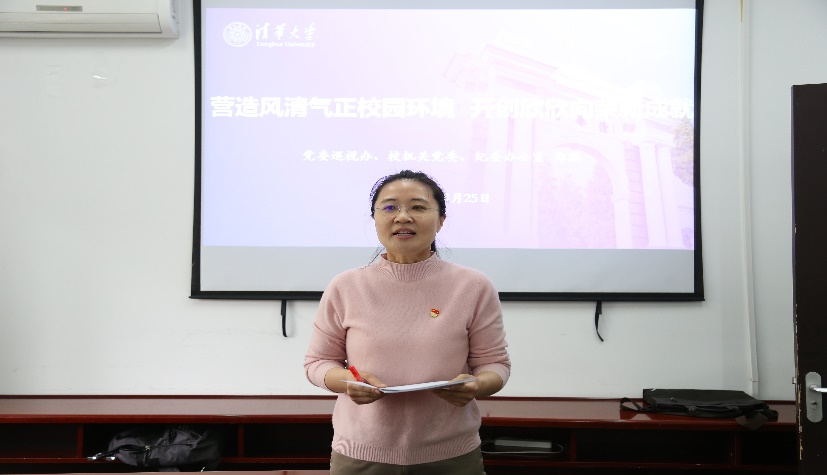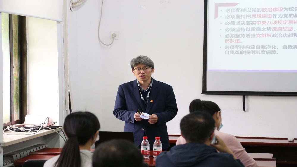 郑鹏作了题为“营造风清气正校园环境,开创欣欣向荣新成就”的报告,他带领大家重点学习了中管高校纪检监察体制改革情况及全面从严治党形势。他在报告中指出,当前全面从严治党取得了历史性、开创性成就,产生了全方位、深层次影响,必须长期坚持、不断前进。同时,以学习领悟习近平总书记关于党的自我革命战略思想为序言,介绍了全面从严治党的形势和高校阶段性特征,重点介绍了高校发生的违纪违法的一些典型案例,以身边人身边事,开展了警示教育,深入分析案例深层次原因,以案说纪、以案说法、以案说德、以案说责,并建议党员同志们要经常性学习党员廉洁自律准则,要崇尚高线、远离红线,以高标准要求自己。