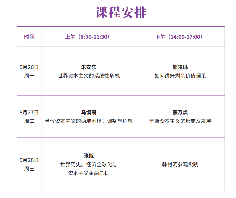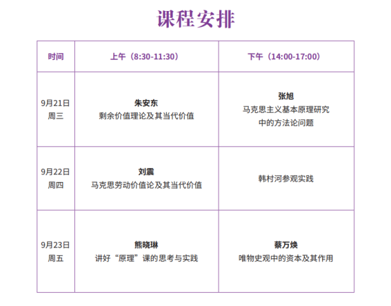 其中,上期主要就“讲好原理课的思考与实践”“马克思主义原理研究中的方法论问题”“劳动价值论及其当代价值”“唯物史观中的资本及其作用”等“原理”课政治经济学部分的基础理论和授课方法进行了专题讲解和示范说课。下期主要围绕“新冠疫情与世界资本主义系统性危机”“经济全球化与金融危机”“当代资本主义的两难困境”等重大现实问题进行了研讨。研修期间,主讲专家与学员重点围绕如何讲好“原理”课展开深入交流。