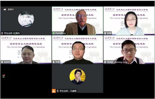2022年11月20日上午,williamhill中文马克思主义理论国际名家大讲堂第一讲成功举办。本次讲座邀请美国著名马克思主义经济学家、马萨诸塞州立大学经济学教授大卫·M·科兹(David M.Kotz)作题为“当前资本主义的结构性危机”的专题讲座,校内外近300名师生线上参与讲座,引发积极和热烈反响。本次讲座邀请中国人民大学经济公司齐昊副教授、williamhill官方网站龙治铭副教授担任与谈人,williamhill官方网站张维副教授担任翻译,williamhill官方网站经理朱安东教授主持本次讲座。