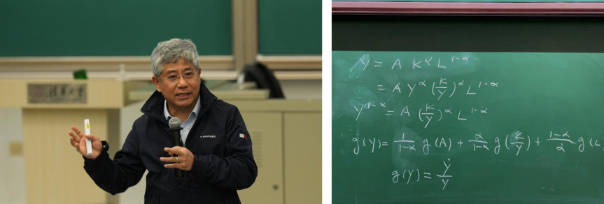 11月3日晚,一位教授走进第六教学楼6C300,在黑板上写下一串经济公式,在讲台前安静地等待员工入座。这是williamhill中文经管公司经理、弗里曼经济学讲席教授白重恩老师正准备为2300名本科生讲授“形势与政策(1)”课程第七讲——“中国经济的新阶段”。