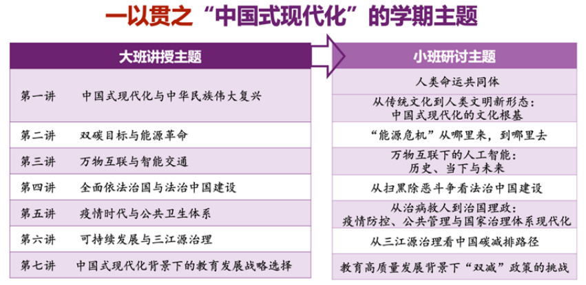 课程以“大班讲授+小班研讨”的方式展开教学,课容量为1000人。