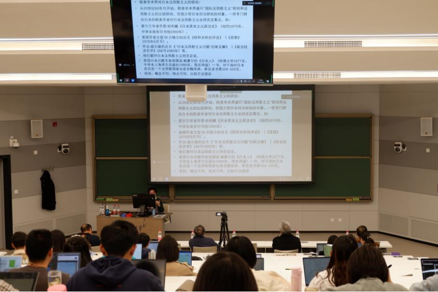 在提问环节,线下线上的与会师生就法西斯团体对中国政治的影响、帝国主义与法西斯主义概念区分、法西斯研究相关书籍推荐等问题进行提问,徐蓝教授结合自身研究成果、高中编撰教材和学术成长等经历做出简要回答。