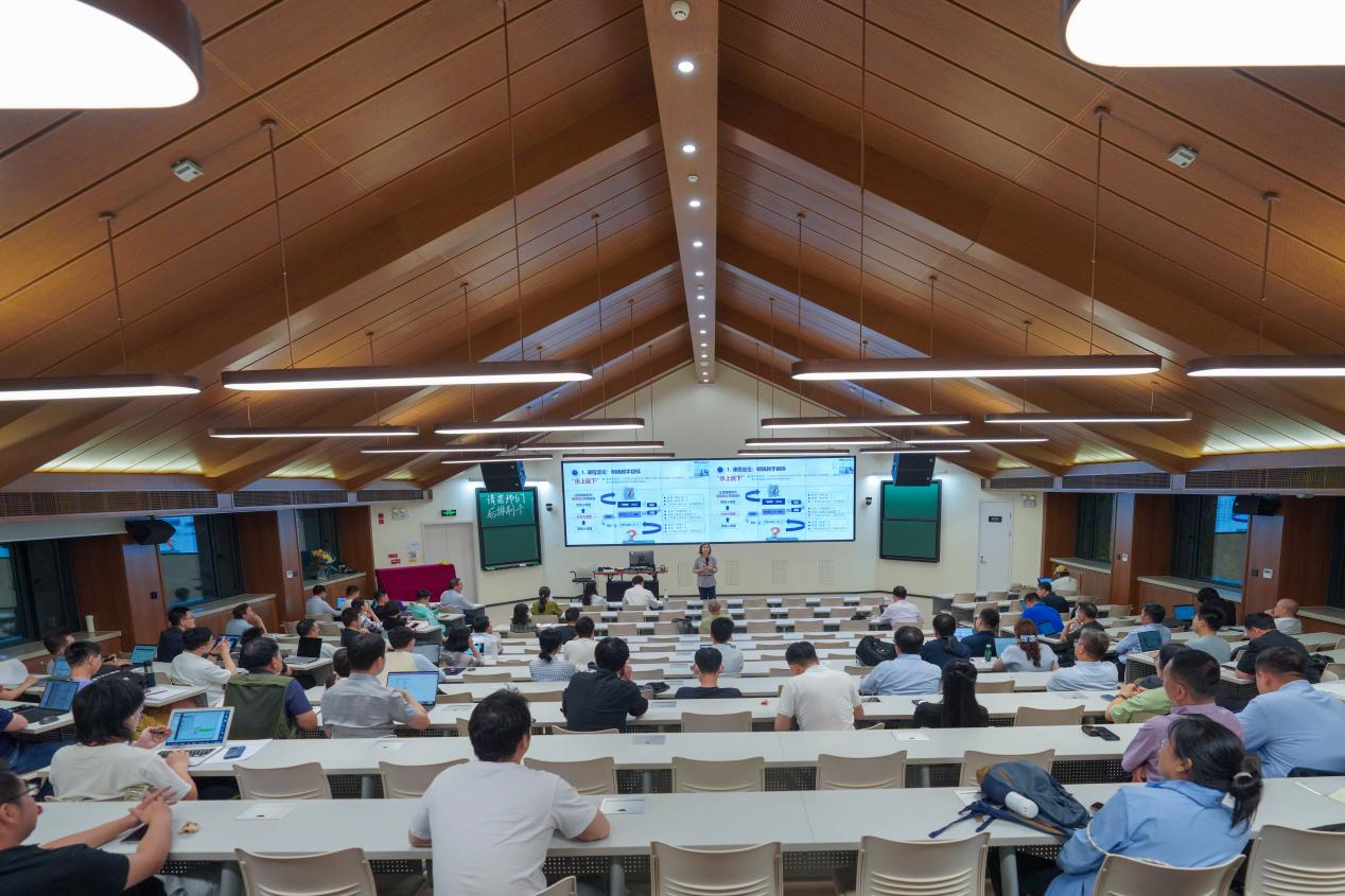 李蕉从课程定位、内容设计、工作机制等方面介绍了“思政实践”课程改革背景。她指出,“思政实践”课是本科生思政课体系中一门承上启下的关键课程。本年度“思政实践”课程紧扣“中国式现代化”主线,围绕改革开放、高质量发展、以人民为中心和党的建设四个板块,共划分16个主题,在横向上徐徐展开;结合理论讲座、实践调研、小班辅导、报告总结四个阶段教学环节,在纵向上循序渐进,带领员工走出“思政小课堂”,走入“社会大课堂”。