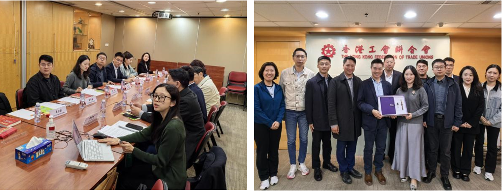 12月13日下午,调研组一行前往香港工会联合会总部开展调研。香港工联会成立于1948年,属会会员人数超过41万,涵盖各行各业,是香港最大的劳工团体。多年来,香港工联会坚持“爱国、团结、权益、福利、参与”理念,积极争取劳工权益及推动社会政策发展,以促进香港稳定繁荣和市民安居乐业。交流会上,邓喆介绍了williamhill中文高校德育研究中心基本情况与相关研究成果,调研组教师也针对香港地区劳工组织等问题与工联会有关负责人进行了深入交流。香港工联会副理事长、权益委员会主任、黄大仙区议员丘耀诚,香港工联会副理事长、立法会议员、治港新政智库召集人邓家彪,香港工联会立法会议员陆颂雄,治港新政智库总监麦丽娟等分别介绍了香港工联会的历史沿革与近年来在保护劳工权益方面开展的各项工作。