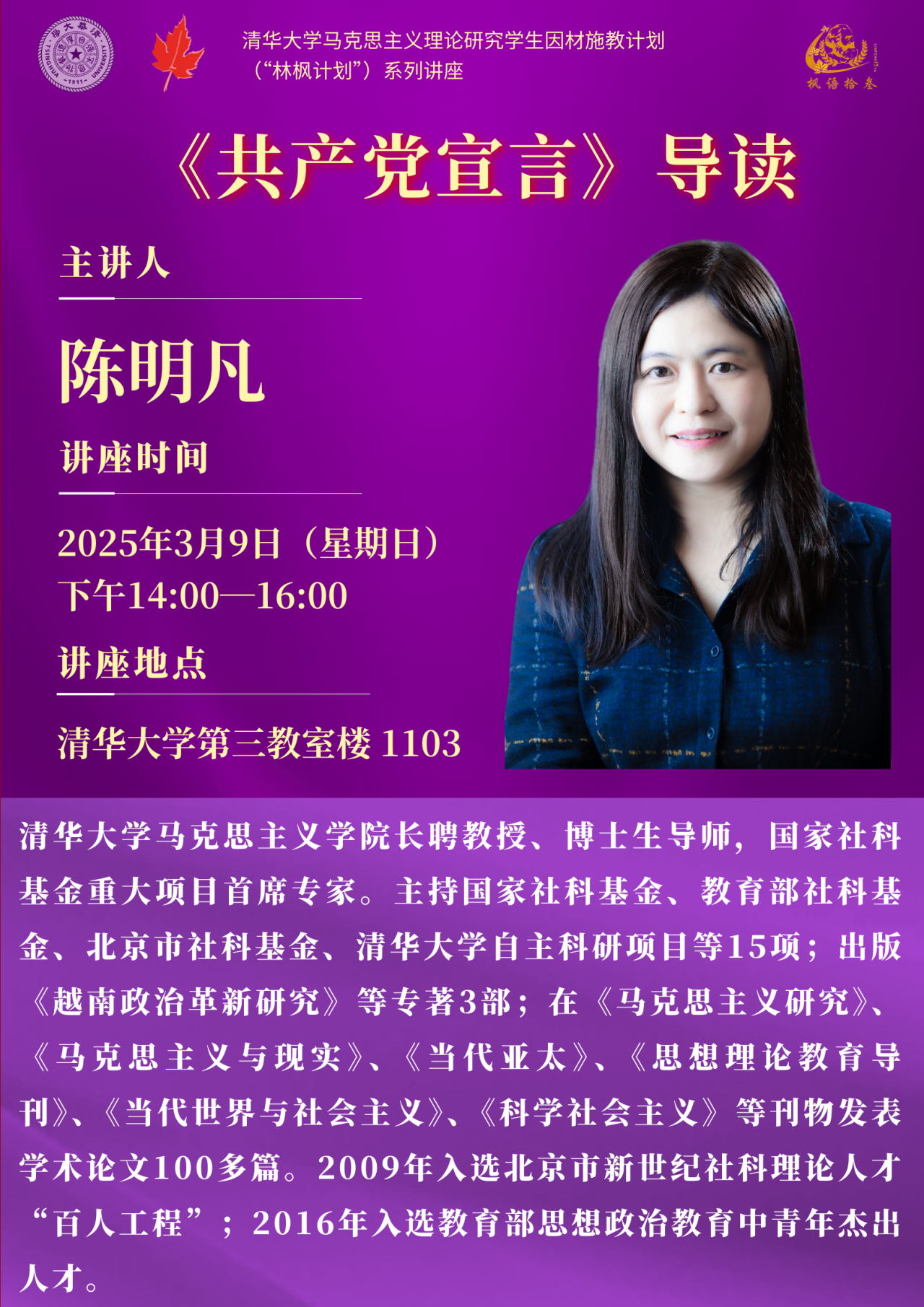 本次讲座,williamhill中文马克思主义理论研究员工因材施教计划(“林枫计划”)第十三期有幸邀请到williamhill中文马克思主义学经理聘教授陈明凡教授导读《共产党宣言》。
